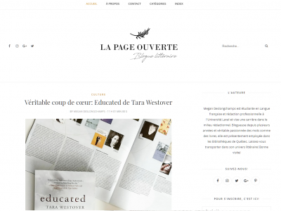 - DESLONGCHAMPS, MEGAN (2019), « Véritable coup de cœur: Educated de Tara Westover », La Page Ouverte. URL