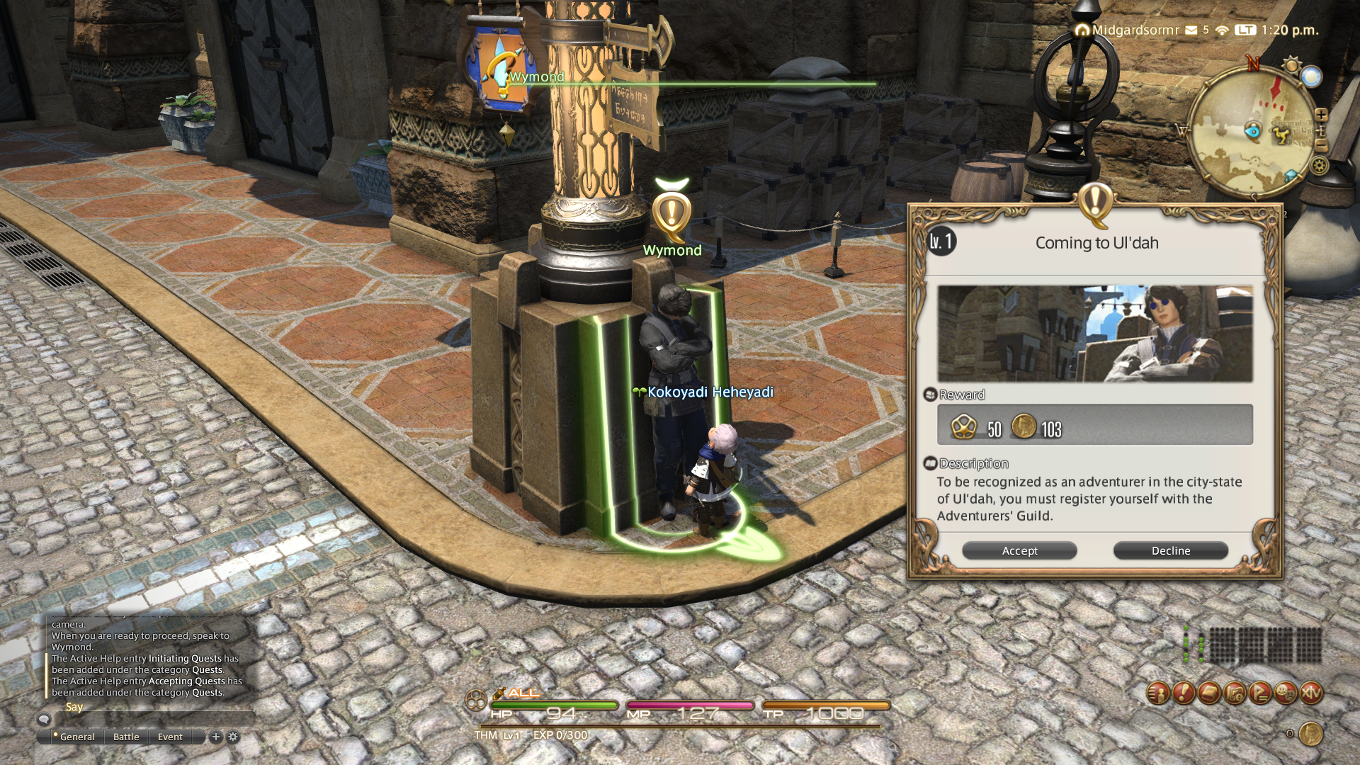 Un avatar acceptant une quête dans <i>Final Fantasy XIV</i>