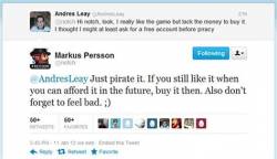 L’intention du créateur était de donner une liberté quasiment totale aux joueurs, il leur laisse même la possibilité de facilement craquer le jeu : “Just pirate it. If you still like it when you can afford it in the future, buy it then. Also don't forget to feel bad. ;)”14), déclare-t-il sur X (anciennement Twitter).