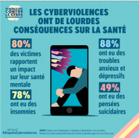 personne. Il peut prendre diverses formes, telles que des messages haineux, des rumeurs diffusées en ligne, le partage non consensuel de photos ou de vidéos compromettantes, la création de faux profils pour diffamer quelqu'un, etc. Cette forme de violence numérique est en augmentation constante et est la source de plusieurs troubles psychologiques tels que l’anxiété, la dépression, la baisse de l’estime de soi, l’insomnie, etc.