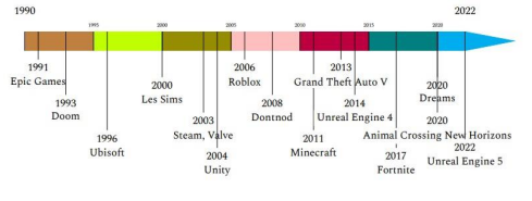 Cependant, cette notion a été sujette à des débats pendant presque un demi-siècle avant la sortie de jeux vidéo commercialisés. En 1956, un cinéaste a imaginé un casque de réalité virtuelle : le Sensorama. Cette invention a été brevetée. Aujourd'hui, elle est encore considérée comme étant une prédécesseure de la réalité virtuelle et, de ce fait même, des jeux vidéo métavers. De nos jours, la concurrence se fait grande quand on parle de jeux vidéo métavers. Il y en a une panoplie, que ce soit en ligne, sur mobile ou encore sur console. Les plus connus sont Roblox, Fortnite et Minecraft. Ces jeux permettent aux joueurs de créer des mondes virtuels dans lesquels il est possible de discuter et d'explorer. Comme ce sont des jeux très importants au niveau commercial, c'est à voir comment les concepteurs finiront par pousser cette idée du métavers dans le futur.